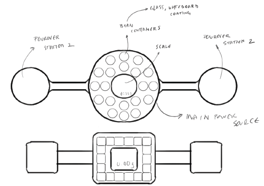 The beans are stored in small vials so baristas are able to weigh out all doses at the beginning of the day. The bean storage system includes a scale, reducing the amount of locations needed to complete the task.